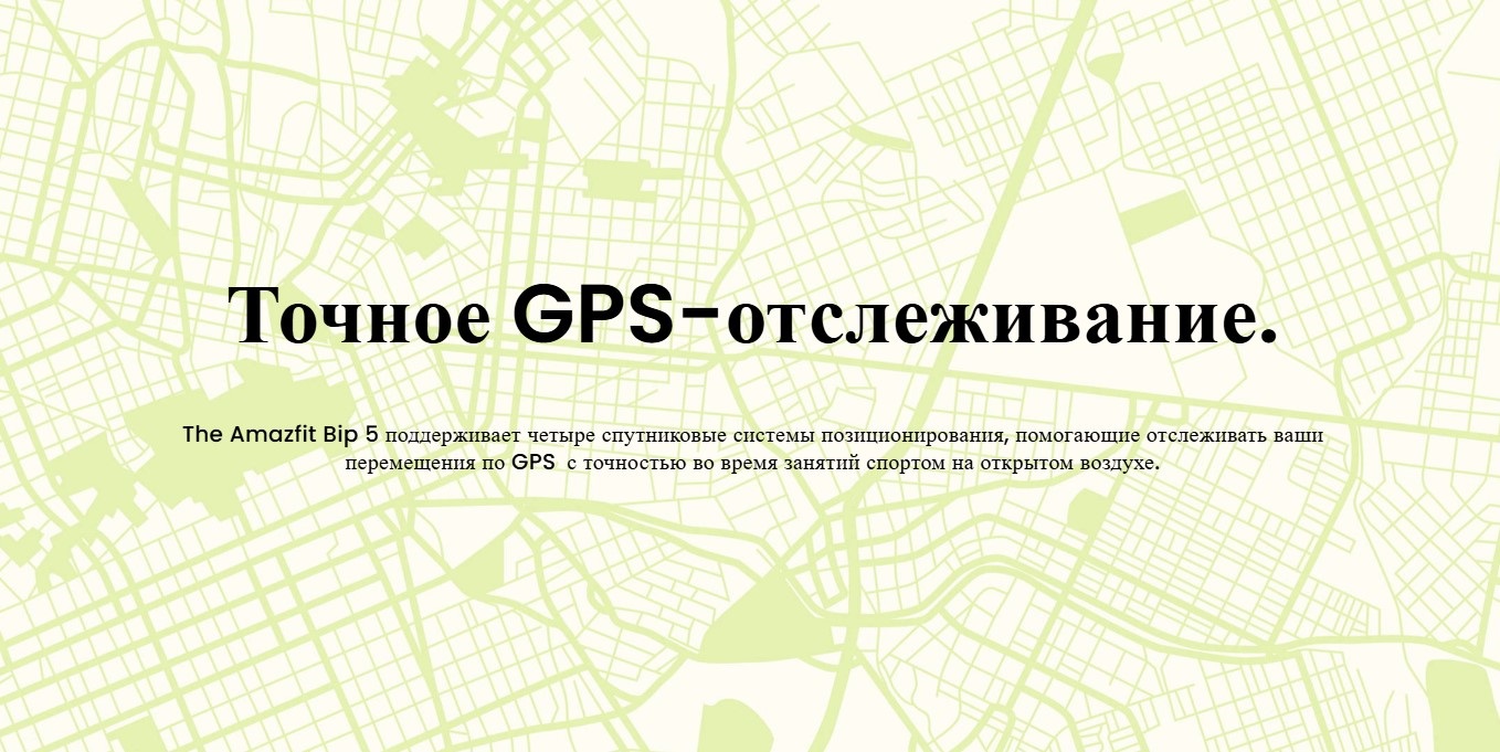 Amazfit Bip 5 поддерживают четыре системы спутникового позиционирования, чтобы помочь вам точно оценить ваши перемещения по GPS во время занятий спортом на свежем воздухе.